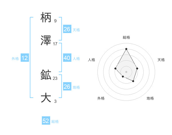 柄澤 鉱大さんを姓名の画数から五運を鑑定