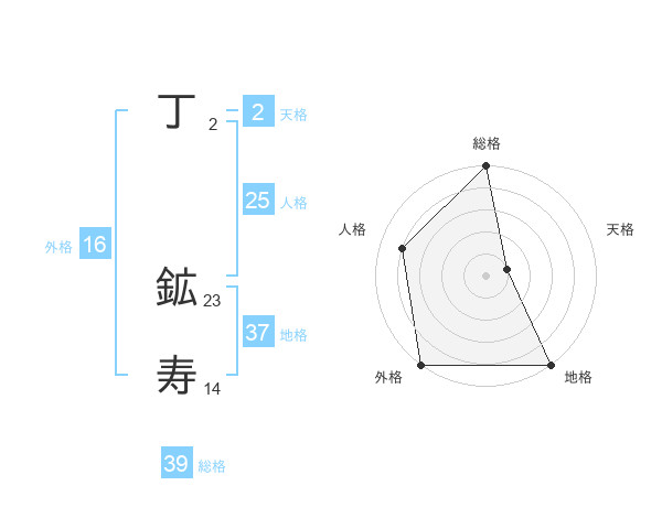 丁 鉱寿さんの地格は37画の5点!