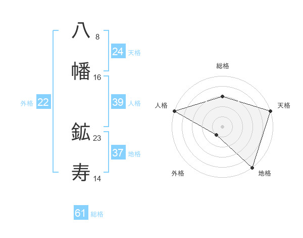 八幡 鉱寿さんの総格は61画の3点!