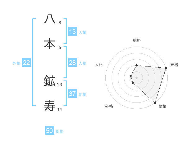 八本 鉱寿さんの総格は50画の2点!
