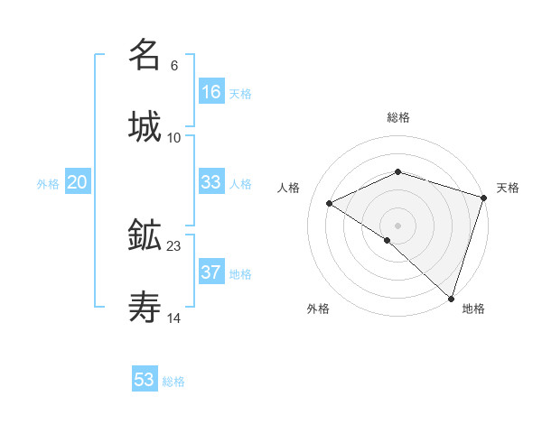 名城 鉱寿さんの総格は53画の3点!