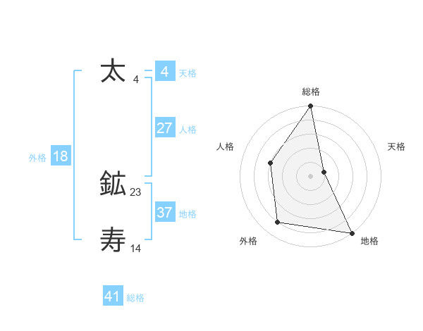 太 鉱寿さんの総格は41画の5点!