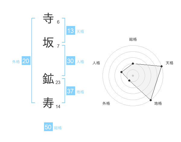 寺坂 鉱寿さんの総格は50画の2点!