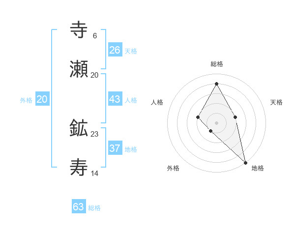 寺瀬 鉱寿さんの総格は63画の4点!
