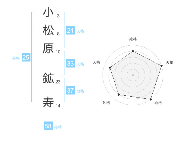 小松原 鉱寿さんの総格は58画の4点!