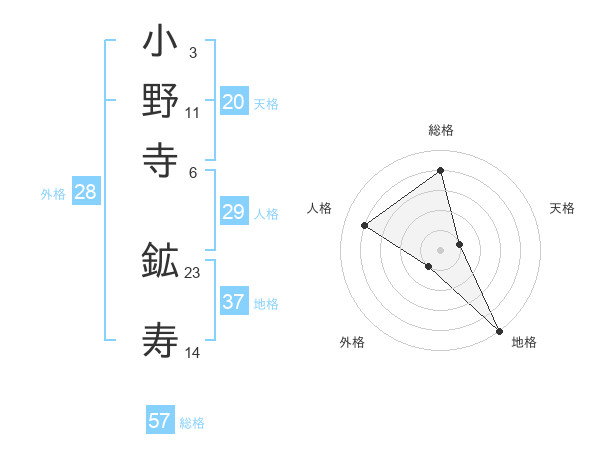 小野寺 鉱寿さんを姓名の画数から五運を鑑定