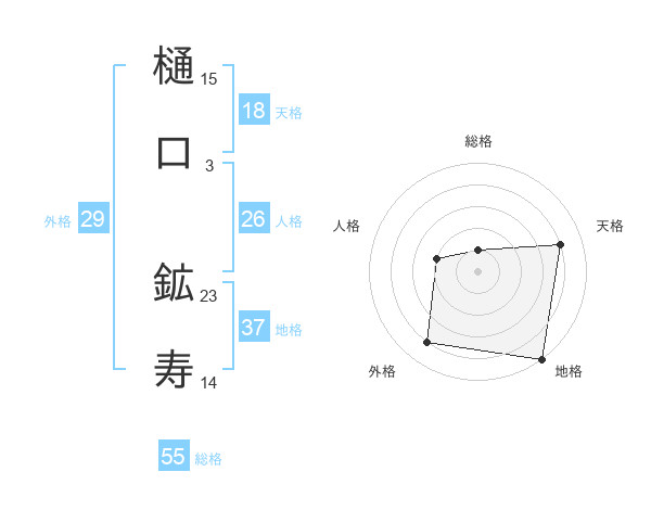樋口 鉱寿さんの地格は37画の5点!