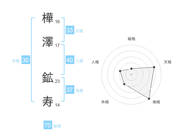 樺澤 鉱寿さんの総格は70画の1点!