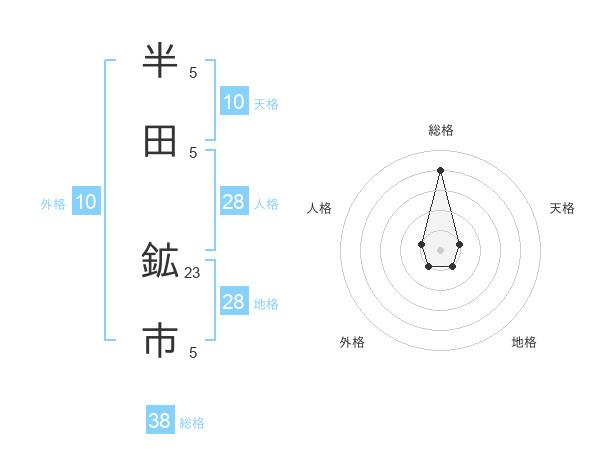 半田 鉱市さんの総格は38画の4点