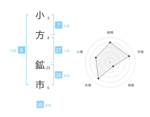 小方 鉱市さんの総格は35画の4点