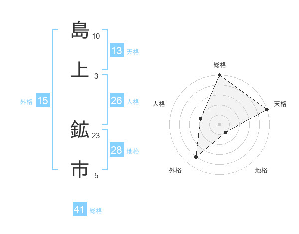 島上 鉱市さんを姓名の画数から五運を鑑定