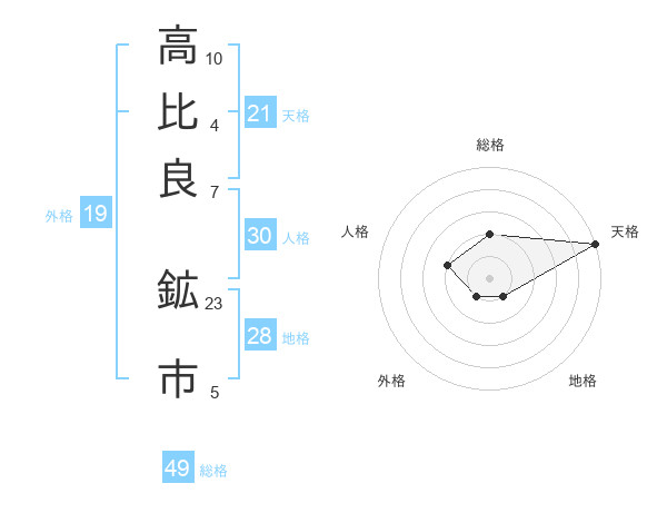 高比良 鉱市さんの総格は49画の2点!