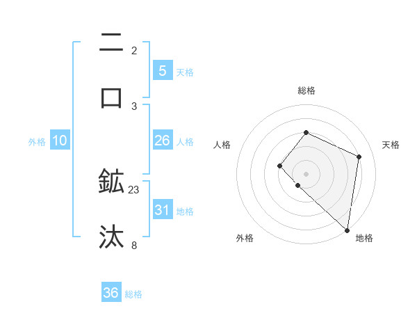 二口 鉱汰さんの地格は31画の5点!