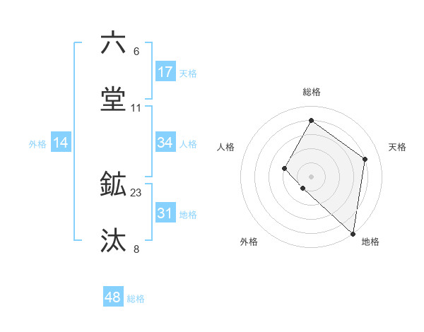 六堂 鉱汰さんの総格は48画の4点!