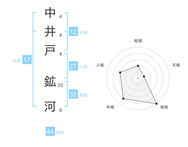 中井戸 鉱河さんを姓名の画数から五運を鑑定