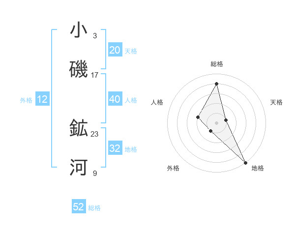 小磯 鉱河さんを姓名の画数から五運を鑑定