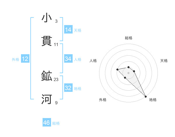 小貫 鉱河さんを姓名の画数から五運を鑑定