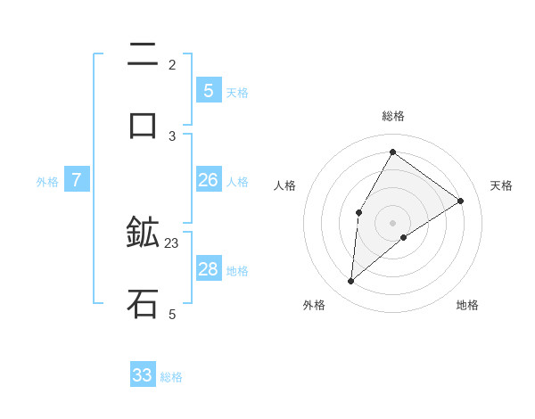 二口 鉱石さんの天格は5画の4点!