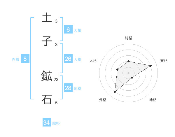 土子 鉱石さんを姓名の画数から五運を鑑定