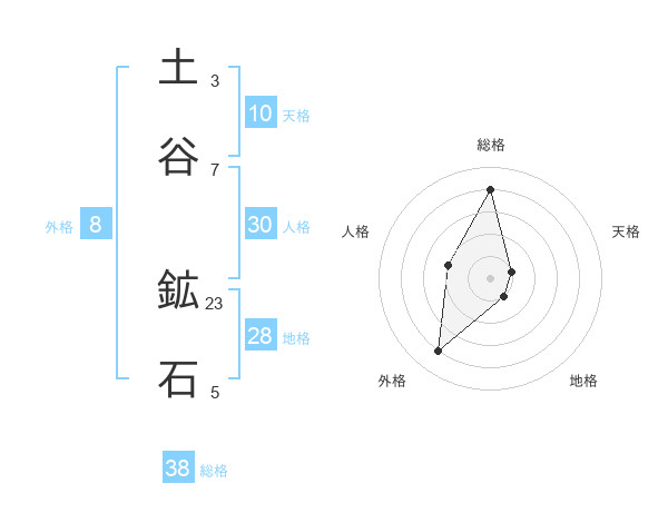 土谷 鉱石さんの総格は38画の4点!