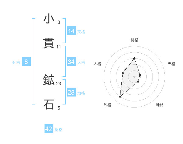 小貫 鉱石さんを姓名の画数から五運を鑑定