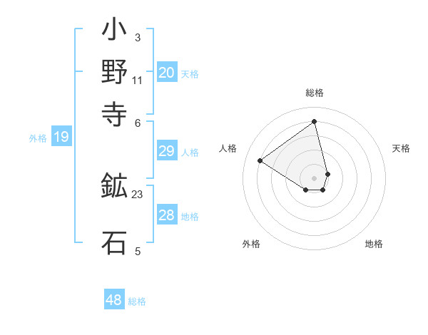小野寺 鉱石さんを姓名の画数から五運を鑑定