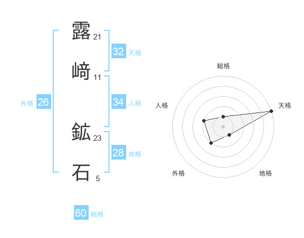 露﨑 鉱石さんの天格は32画の5点!
