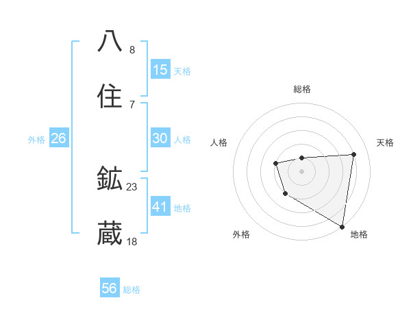 八住 鉱蔵さんを姓名の画数から五運を鑑定
