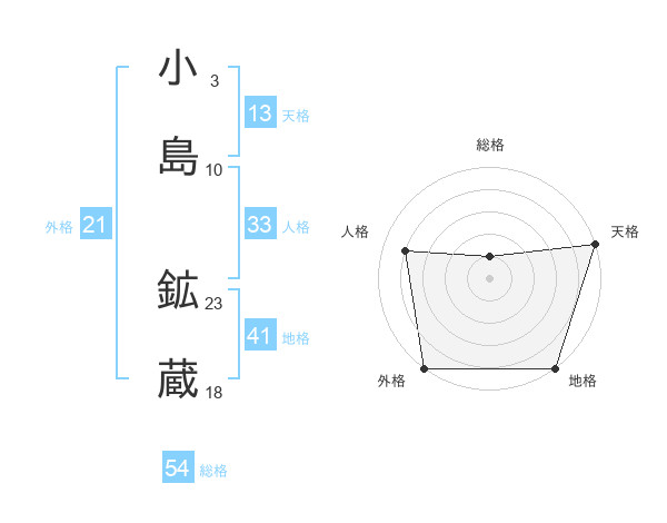 小島 鉱蔵さんの外格は21画の5点!