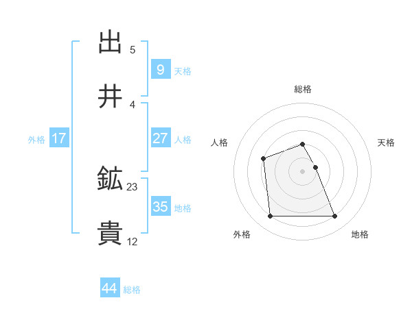 出井 鉱貴さんを姓名の画数から五運を鑑定