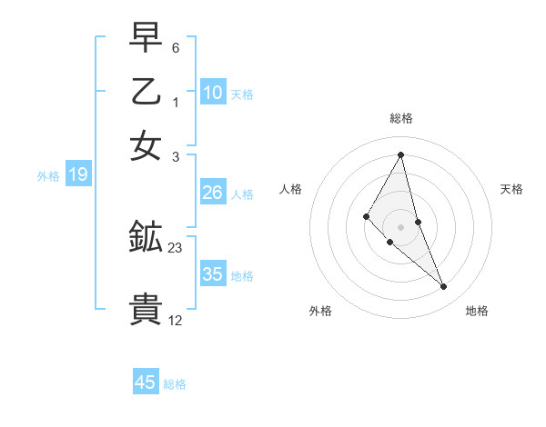早乙女 鉱貴さんを姓名の画数から五運を鑑定