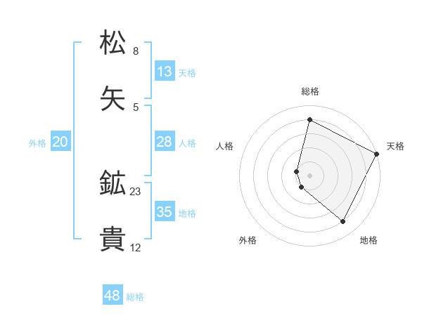 松矢 鉱貴さんの総格は48画の4点!