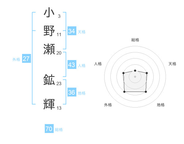 小野瀬 鉱輝さんを姓名の画数から五運を鑑定