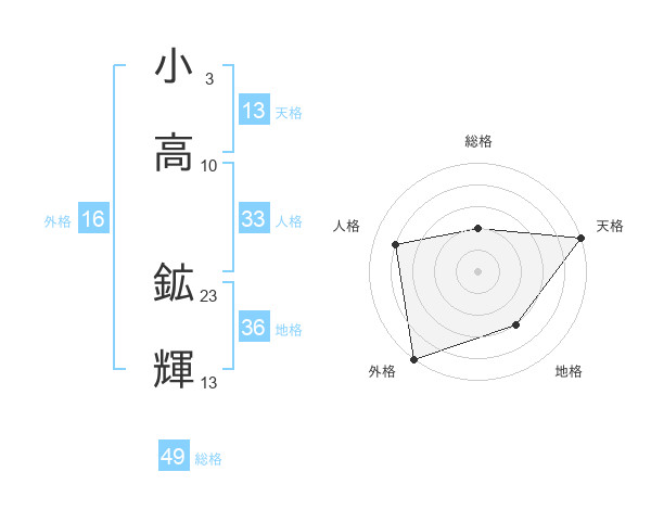 小高 鉱輝さんの総格は49画の2点!