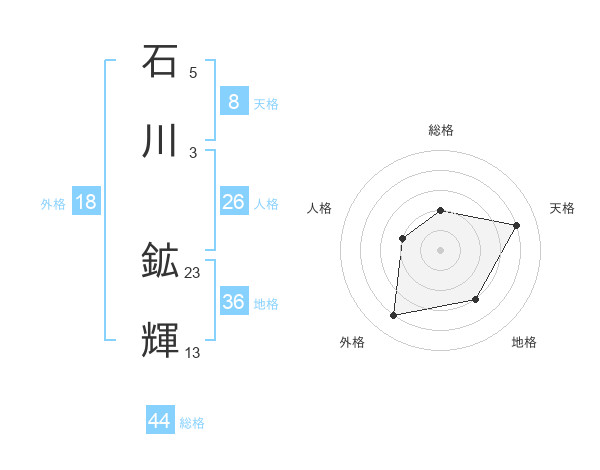 石川 鉱輝さんの総格は44画の2点
