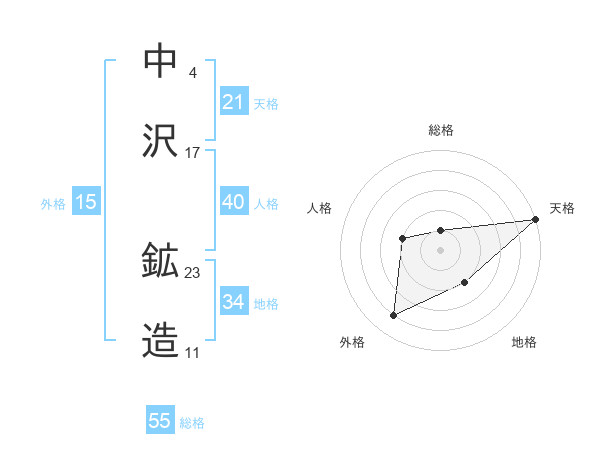 中沢 鉱造さんの総格は55画の1点!