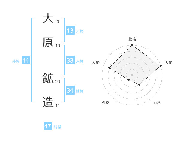 大原 鉱造さんの総格は47画の5点!
