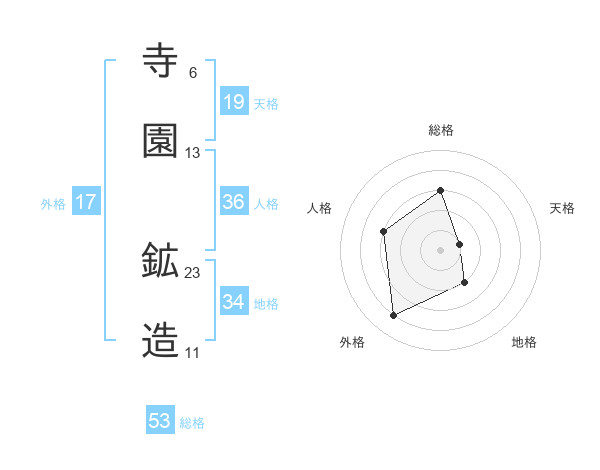 寺園 鉱造さんの外格は17画の4点!