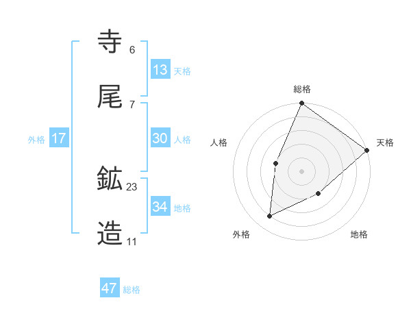 寺尾 鉱造さんの総格は47画の5点!