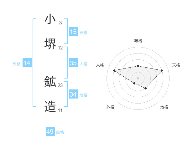 小堺 鉱造さんを姓名の画数から五運を鑑定