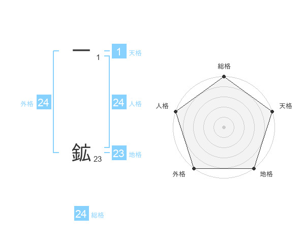 一 鉱さんの外格は24画の5点!