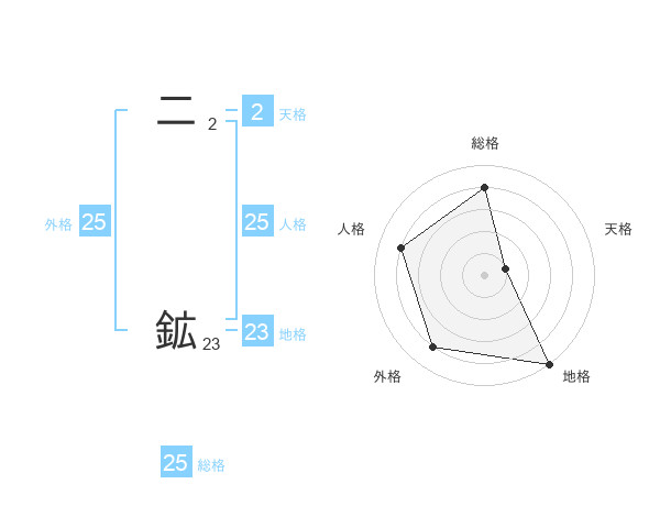 二 鉱さんの外格は25画の4点!