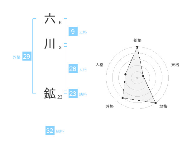 六川 鉱さんの総格は32画の5点!