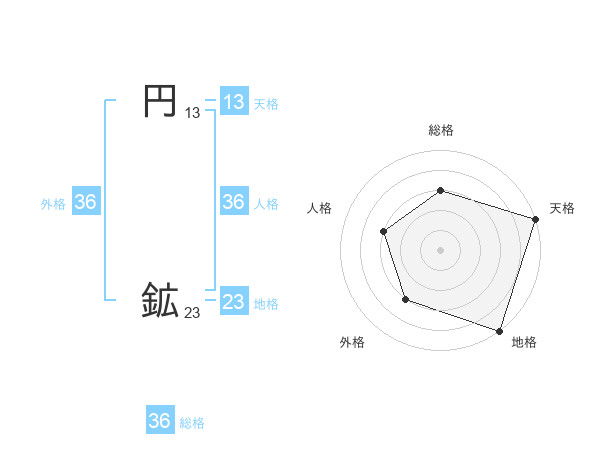 円 鉱さんの外格は36画の3点!