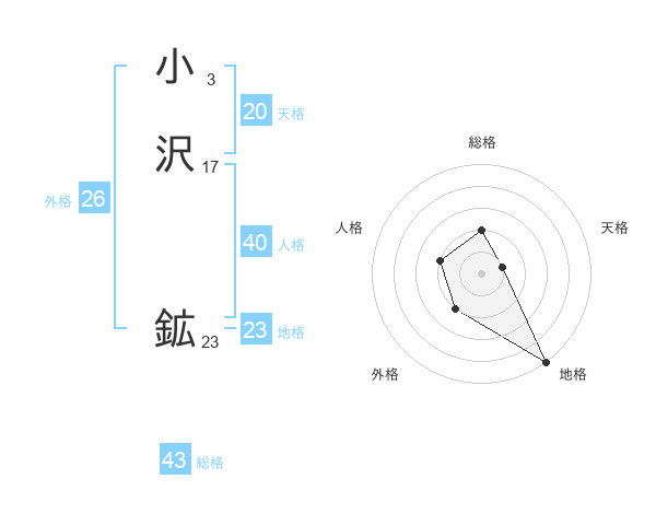 小沢 鉱さんを姓名の画数から五運を鑑定