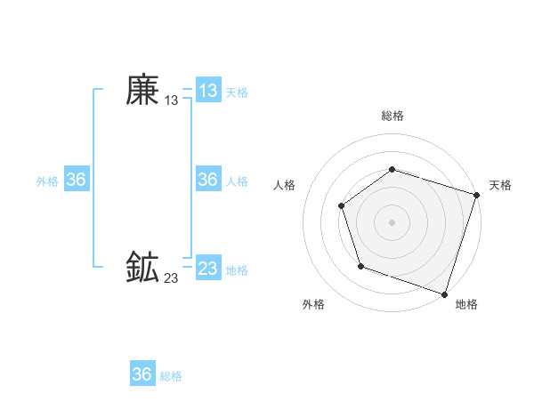 廉 鉱さんの外格は36画の3点!