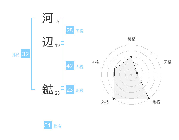河辺 鉱さんの総格は51画の3点!