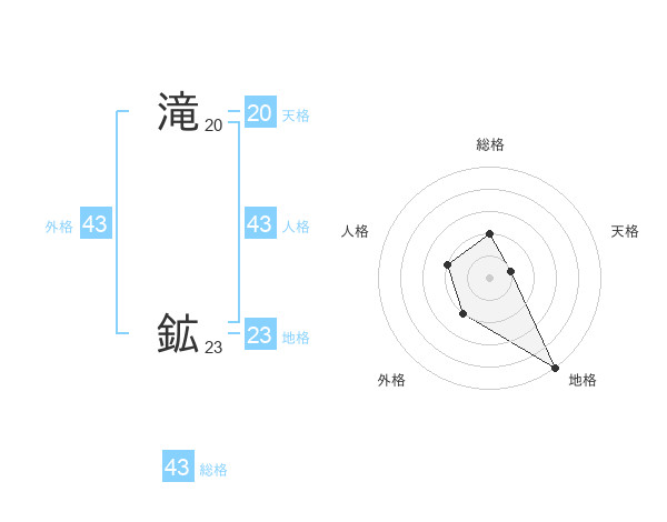 滝 鉱さんの天格は20画の1点!