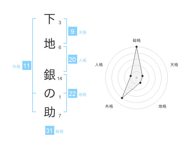 下地 銀の助さんを姓名の画数から五運を鑑定