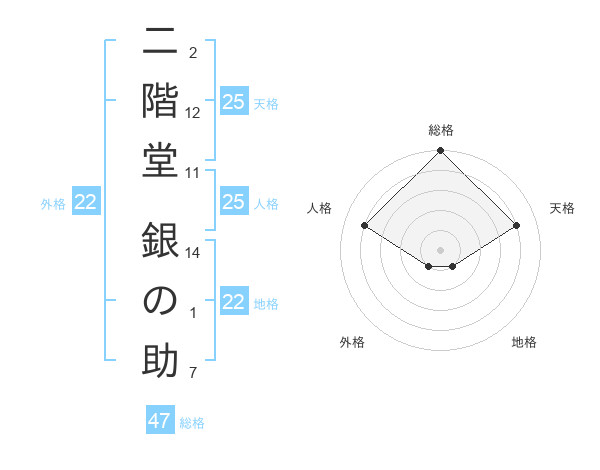 二階堂 銀の助さんを姓名の画数から五運を鑑定